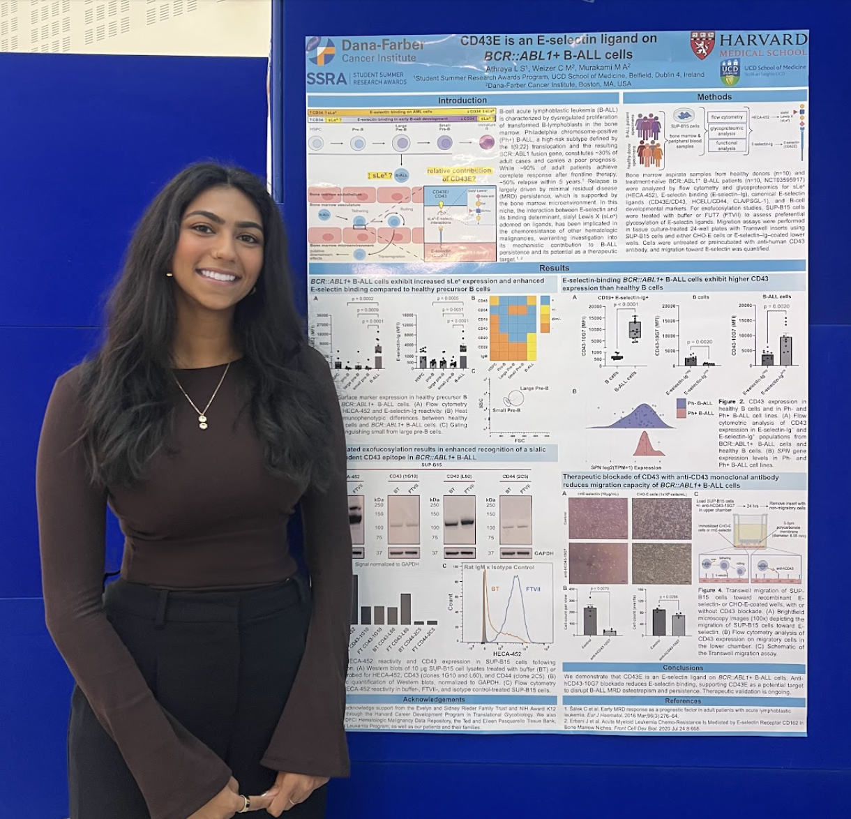 Medical student Srisha Athreya presents her work on the molecular biology of acute lymphoblastic leukemia during the finalist round at the student research summit at University College Dublin, September 2025.